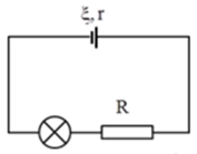 Một bóng đèn có ghi \(6V-3W\), một điện trở \(R\) và một nguồn điện được mắc thành mạch