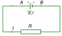 Định luật Ôm cho toàn mạch: \(I = \dfrac{\xi }{{R + r}}\)
