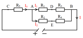 Quy tắc cộng hiệu điện thế: \({U_{DE}} = {U_{DA}} + {U_{AE}}\)