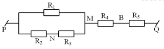 Cho mạch điện như hình vẽ. Vôn kế có điện trở rất lớn. Ampe kế và khóa K có điện trở không đáng kể, \({R_1} = {R_2} = {R_3} = 6\Omega ;\,\,{R_4} = 2\Omega ;\,\,{R_5} = \dfrac{2}{3}\Omega \). Khi K mở, Vôn kế chỉ 12V. Tính hiệu điện thế U hai đầu mạch.