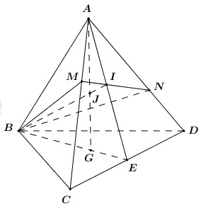 Cho tứ diện ABCD. Lấy điểm \(M\in AC,\,\,N\in AD\) và G là trọng tâm \(\Delta BCD\).