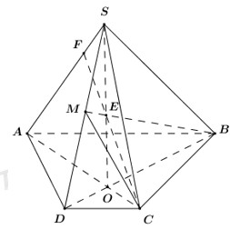 Cho hình chóp \(S.ABCD\) có đáy ABCD là hình thang \(\left( AB\parallel CD \right)\). Lấy điểm \(M\in SD\), gọi O là giao điểm của hai đường chéo.