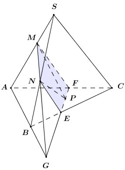 Cho hình chóp \(S.ABC.\) Lấy điểm \(M \in SA\) sao cho \(MA = 2MS,\,\,N \in SB\) sao cho \(NS = 2NB.\) Điểm \(P\) thuộc miền trong \(\Delta ABC.\) Tìm thiết diện tạo bởi \(\left( {MNP} \right)\) với hình chóp.