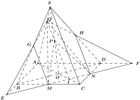 Cho hình chóp \(S.ABCD,\) đáy là hình bình hành tâm \(O.\) Gọi \(M,N,P\) lần lượt là trung điểm