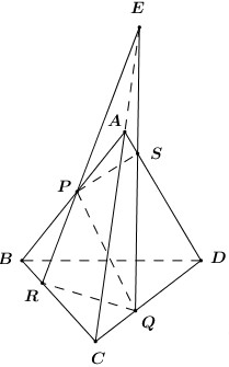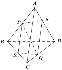 Cho tứ diện \(ABCD\) và lấy \(P \in AB,\,\,Q \in CD,\,\,R \in BC.\) Tìm giao điểm \(S\) của \(\left( {PQR} \right)\) với cạnh \(AD\) nếu: