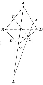 Cho tứ diện \(ABCD\). Gọi \(P,Q\) lần lượt là trung điểm \(AB,CD\,\,;\,\,R \in BC\) sao cho \(BR = 2RC.\) Gọi \(S\) là giao điểm của \(\left( {PQR} \right)\) với cạnh \(AD.\) Chứng minh rằng \(AS = 2SD.\)