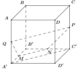Cho hình lập phương \(ABCD.A'B'C'D',\) cạnh \(a.\) Gọi \(M,N,P,Q\) lần lượt là trung điểm của \(A'B',C'B',CC',AA'.\)