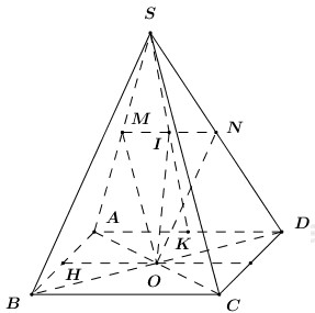 Cho hình chóp \(S.ABCD,\) đáy \(ABCD\) là hình bình hành tâm \(O.\) Gọi \(M,N,K\) theo thứ tự là trung