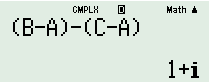 Sử dụng máy tính Casio để tìm tọa độ của vecto \(\overrightarrow {AB} - \overrightarrow {AC} \) \(\left( {\left( {B - A} \right) - \left( {C - A} \right)} \right)\).