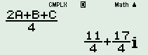 Biến đổi biểu thức vecto: \(E = \dfrac{1}{4}\left( {2A + B + C} \right)\). Sau đó, sử dụng Casio để tìm tọa độ điểm \(E\).