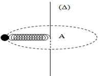 Một lò xo có độ cứng \(k\), có chiều dài tự nhiên \({l_0}\) một đầu giữ cố định ở A đầu kia gắn vào quả cầu khối lượng \(m\) có thể trượt không ma sát trên mặt bàn nằm ngang. Thanh \(\left( \Delta \right)\) quay đều với tốc độ góc \(\omega \) quanh trục \(\left( \Delta \right)\) thẳng đứng. Tính độ dãn của lò xo khi :