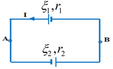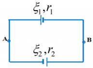 Hai pin được ghép với nhau theo các sơ đồ ở hình vẽ. Tìm cường độ dòng điện trong mạch và hiệu điện thế giữa hai điểm \(A, B.\) Biết hai pin ghép nối tiếp có cùng suất điện động và điện trở trong \({r_1}\) và \({r_2}\) khác nhau.