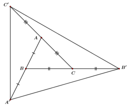 Cho \(\Delta ABC\) có: \(A'\) đối xứng với \(A\) qua \(B,\) \(B'\) đối xứng với \(B\) qua