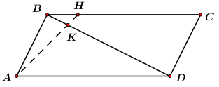 Cho hình bình hành \(ABCD.\) \(H,\,\,K\) thỏa mãn\(\overrightarrow {BH} = \dfrac{1}{5}\overrightarrow {BC}