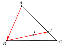 Cho tam giác \(ABC,\) \(I \in AC\) sao cho \(CI = \dfrac{1}{4}CA\), \(J\) là điểm thỏa mãn \(\overrightarrow {BJ} = \dfrac{1}{2}\overrightarrow {AC} - \dfrac{2}{3}\overrightarrow {AB} \).