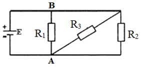 Cho mạch điện có sơ đồ như hình vẽ, trong đó nguồn điện có suất điện động \(\xi = 9V\) và có điện trở trong không đáng kể. Các điện trở \({R_1}\; = {R_2}\; = 15\Omega ,{R_3}\; = 3,75\Omega \). Cường độ dòng điện qua mỗi điện trở \({R_1},{R_2},{R_3}\) lần lượt là: