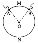 Dòng điện chạy qua một vòng dây dẫn tại hai điểm \(A,\,\,B\). Sợi dây dẫn tạo nên vòng dây