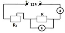 a. Điều chỉnh con chạy của biến trở để vôn kế chỉ \(6\,\,V\) thì ampe kế chỉ \(0,5\,\,A\). Hỏi khi đó biến trở có điện trở là bao nhiêu?