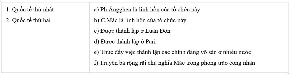 Dựa vào kiến thức đã học trong bài Quốc tế thứ nhất và Công xã Pari, Quốc tế thứ hai