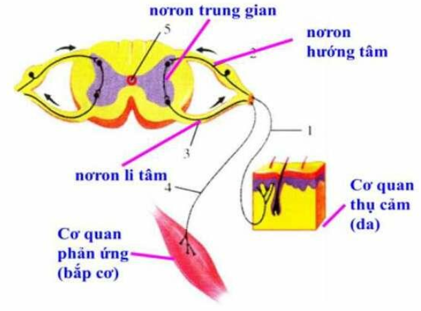 Một cung phản xạ gồm đầy đủ các thành phần sau: