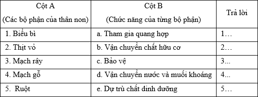 Hãy chọn nội dung ở cột B sao cho phù hợp với nội dung ở cột A rồi viết các chữ (a, b, c...)