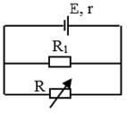 Cho mạch điện như hình vẽ, bỏ qua điện trở của dây nối, cho \(E = 15V;r = 1\Omega ;{R_1} = 2\Omega \). Xác định \(R\) để công suất tiêu thụ trên \(R\) đạt cực đại và tính công suất cực đại đó: