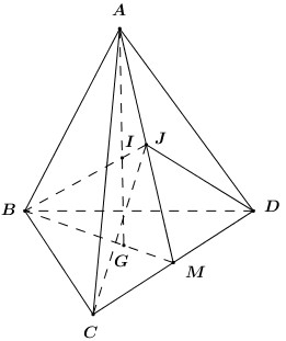 Cho tứ diện \(ABCD\), gọi \(G\) là trọng tâm tam giác \(BCD\), \(M\) là trung điểm của \(CD\), \(I\)
