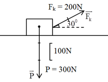 b. Vật chịu tác dụng của hai lực: trọng lực \(P\) có độ lớn \(300\,\,N\); lực kéo \({F_k}\) có phương nghiêng \({30^0}\) so với phương nằm ngang, chiều hướng lên trên, cường độ \(200\,\,N\).