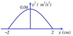 Một vật dao động điều hòa dọc theo trục \(Ox,\) có đồ thị biểu diễn sự phụ thuộc của bình phương vận tốc \(\left( {{v^2}} \right)\) vào li độ \(9\) như hình vẽ. Tần số góc của vật là