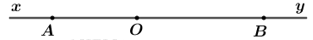 Vẽ hai tia đối nhau \(Ox\) và \(Oy\). Lấy điểm \(A\) thuộc tia \(Ox\), lấy điểm \(B\) thuộc tia