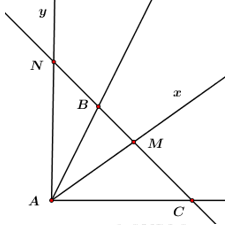 Cho ba điểm không thẳng hàng \(A,\,\,B,\,\,C\). Vẽ hai tia \(AB,\,\,AC\). Vẽ tia \(Ax\) cắt đường thẳng \(BC\) tại điểm \(M\) nằm giữa \(B\) và \(C\). Vẽ tia \(Ay\) cắt đường thẳng \(BC\) tại điểm \(N\) không nằm giữa \(B\) và \(C\). Có mấy trường hợp hình vẽ, đó là trường hợp nào?