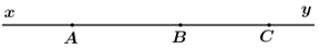 Vẽ đường thẳng \(xy\). Lấy ba điểm \(A,\,\,B,\,\,C\) trên đường thẳng \(xy\) theo thứ tự