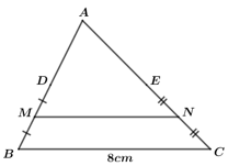 Cho tam giác \(ABC\) có cạnh \(BC = 8cm\) và \(D,\,\,E,\,\,M,\,\,N\) lần lượt là trung điểm của