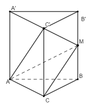 Cho lăng trụ đứng \(ABC.A'B'C'\) có đáy \(ABC\) là tam giác cân tại C ,\(\angle BAC = 30^\circ ,\)\(AB = a\sqrt 3 ,\)\(AA' = a\). Gọi \(M\) là trung điểm của \(BB'\). Tính theo \(a\) thể tích \(V\) của khối tứ diện \(MACC'\).