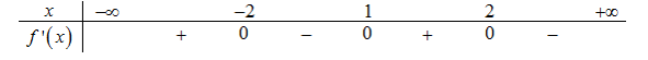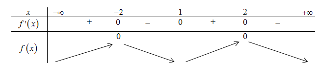 Cho hàm số \(f\left( x \right)\) có \(f\left( 2 \right) = f\left( { - 2} \right) = 0\) và có bảng xét dấu của đạo hàm như sau:
