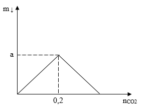 Sục từ từ CO2 vào dung dịch nước vôi trong. Sự phụ thuộc của khối lượng kết tủa (gam) vào số mol CO2 được biểu diễn qua đồ thị sau: