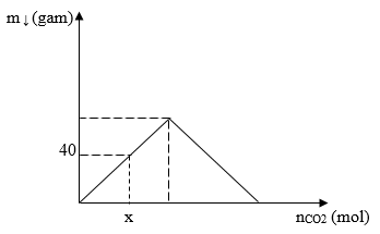 Sục từ từ CO2 vào dung dịch nước vôi trong. Sự phụ thuộc của khối lượng kết tủa vào số mol CO2 được biểu diễn qua đồ thị sau: