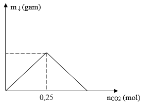 Hòa tan hoàn toàn m gam BaO vào nước thu được dung dịch X. Sục từ từ CO2 vào dung dịch X. Sự phụ thuộc của khối lượng kết tủa (gam) vào số mol CO2 được biểu diễn qua đồ thị sau: