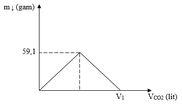 Tại điểm\({V_{C{O_2}}}\) = V1, kết tủa vừa bị hòa tan hết: