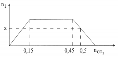 Sục từ từ khí CO2 vào dung dịch hỗn hợp Ca(OH)2 và KOH. Số mol kết tủa sinh ra phụ thuộc vào số mol CO2 được biểu diễn theo đồ thị sau (đơn vị số liệu là mol):