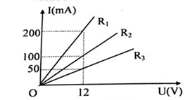 Trên hình 1 là đồ thị biểu diễn sự phụ thuộc của cường độ dòng điện và hiệu điện thế đối với 1 dây dẫn khác nhau. Dựa vào đồ thị cho biết điện trở \({R_1},{\rm{ }}{R_2},{\rm{ }}{R_3}\) có giá trị là: