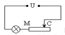 Cho mạch điện như hình vẽ, U không đổi. Để đèn sáng mạnh hơn thì phải dịch chuyển con chạy C về phía: