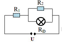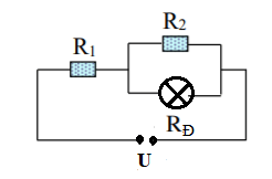 Cho mạch điện gồm \({R_1}{\mkern 1mu} {\mkern 1mu} nt{\mkern 1mu} {\mkern 1mu} \left( {{R_2}//{R_D}} \right)\),
