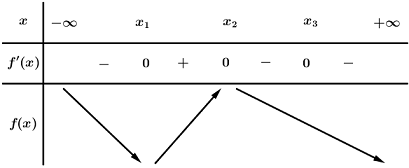 (II). Hàm số \(y = f\left( x \right)\) đạt cực đại tại \({x_3}\)