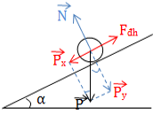 + Khi lò xo nằm trên mặt phẳng nghiêng góc \(\alpha \), ở VTCB lò xo bị dãn một đoạn \(\Delta {l_{01}}\):