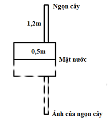 Một cái cây mọc thẳng đứng ở bờ ao. Cây cao 1,2m và gốc cây cao hơn mặt nước 50cm. Ngọn cây cách ảnh của nó là: