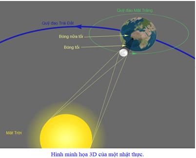Hãy giải thích hiện tượng nhật thực? Vùng nào trên Trái Đất có hiện tượng nhật thực toàn