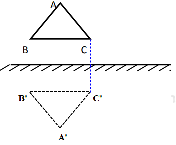 Cho một tam giác ABC đặt trước một gương phẳng vẽ ảnh của tam giác tạo bởi gương phẳng?