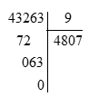 Đặt tính chia, thực hiện chia số có 5 chữ số cho số có 1 chữ số.
