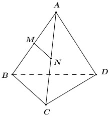 Cho tứ diện \(ABCD\). Gọi \(M,\,\,N\) lần lượt là trung điểm của \(AB,\,\,AC\). Khi đó đường